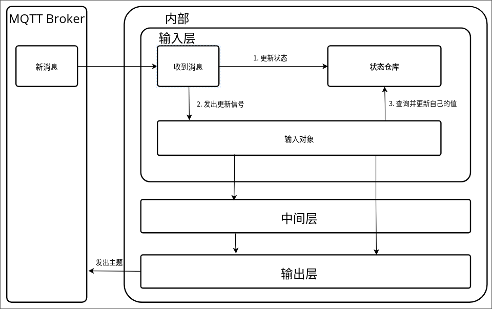 Reactive。 - 中间层:由输入对象计算而来的响应式变量,如外界是否暗到需要开灯。对应 Vue 中的